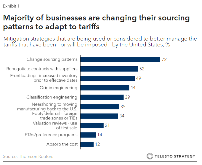 - Re-pricing. Companies look to reprice certain components of their product to reduce tariff exposure