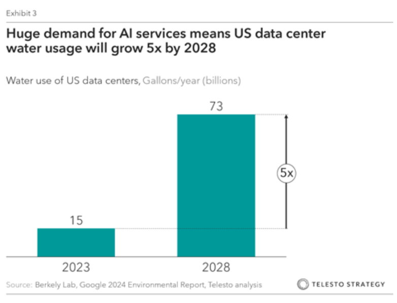 - Changing tenant expectations: Tenant scrutiny of water resilience is intensifying, particularly in water-intensive sectors like data centers, manufacturing, and hospitality. Data centers, which use approximately 6.8 million gallons per year per MW of generation, are increasingly prioritizing locations with secure water supplies and proven conservation plans. Companies like Microsoft are embedding ambitious water goals into leasing criteria, explicitly assessing local water stress before committing to new sites.